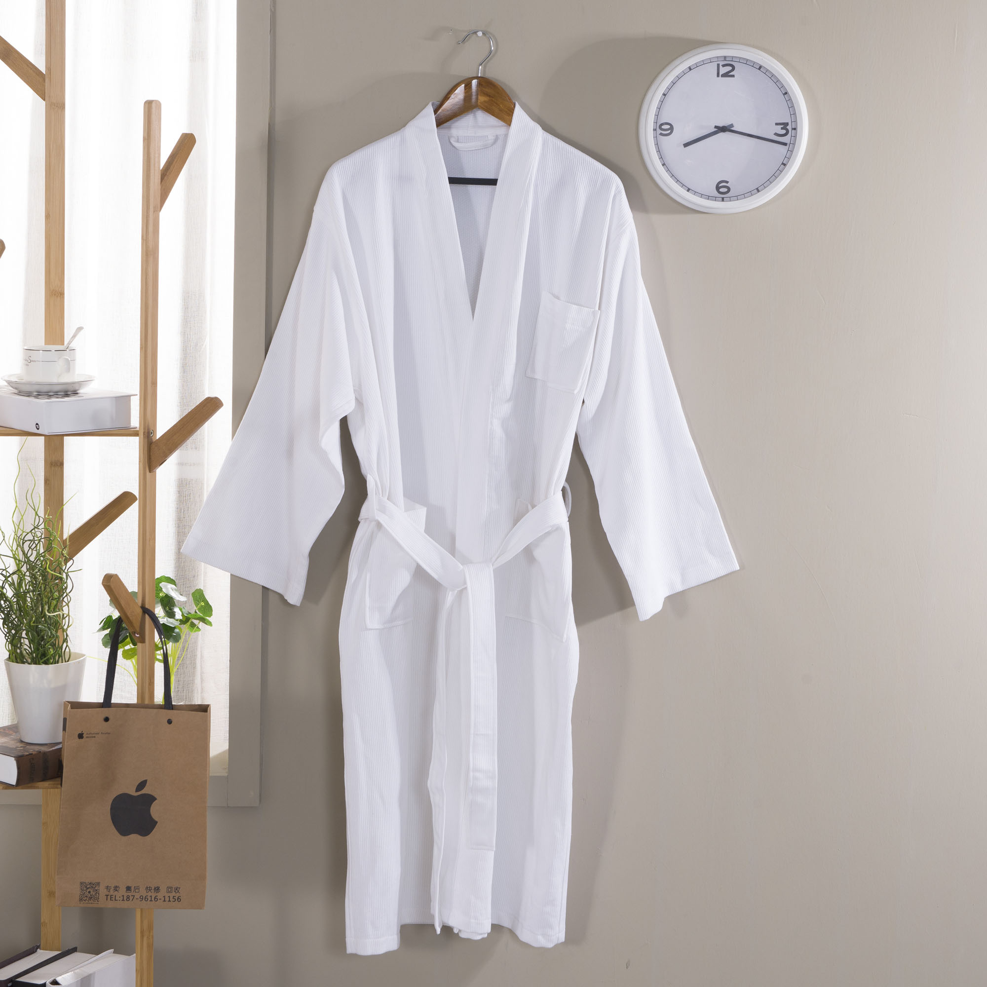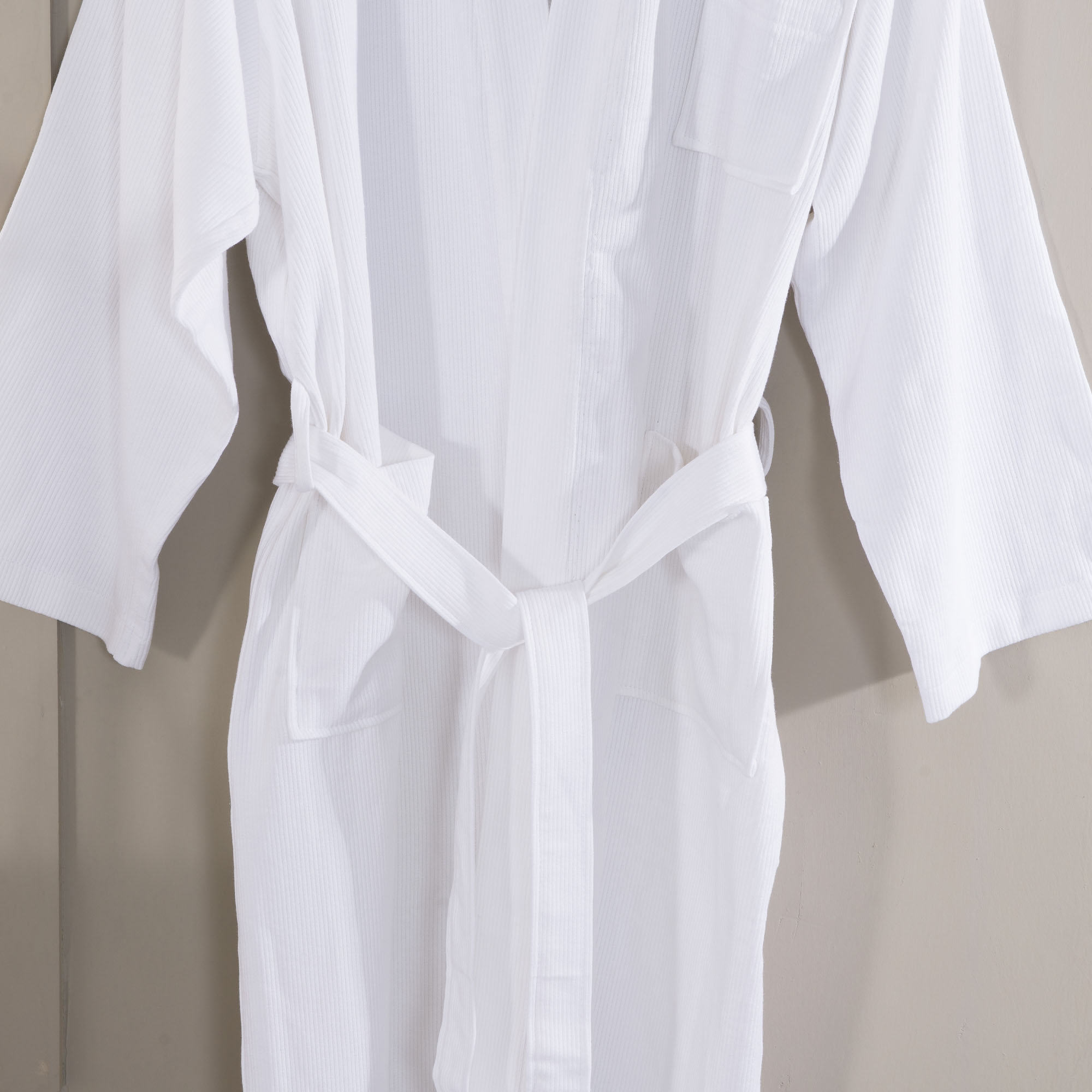 Hotel 100% Cotton White Striped Waffle Bathrobe